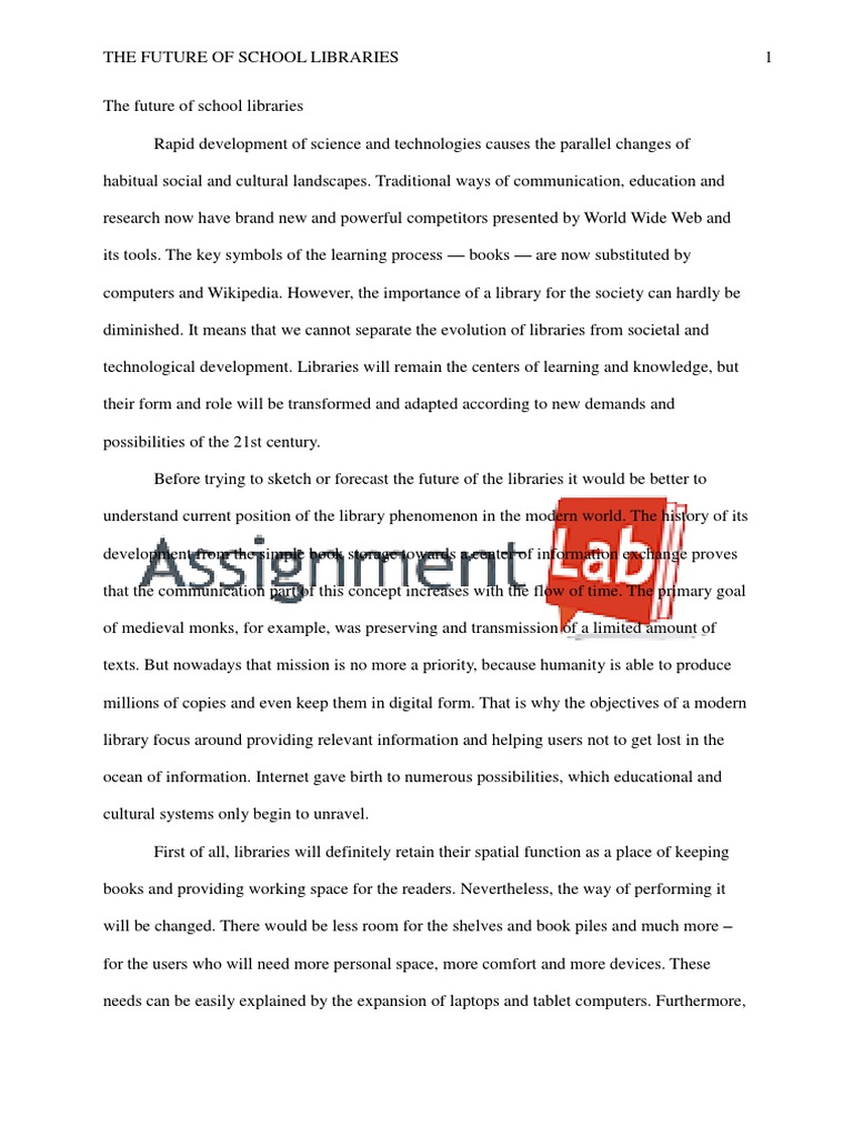 Long tables and chairs are placed beside them. Students sit here and study. The reading-room of the library, a kind of small hall, school library essay, is at the entrance to the library. Big round tables with chairs around are to be found here. Newspapers and magazines lie on these school library essay all the time. During the recess, the reading-room is crowded, school library essay.
